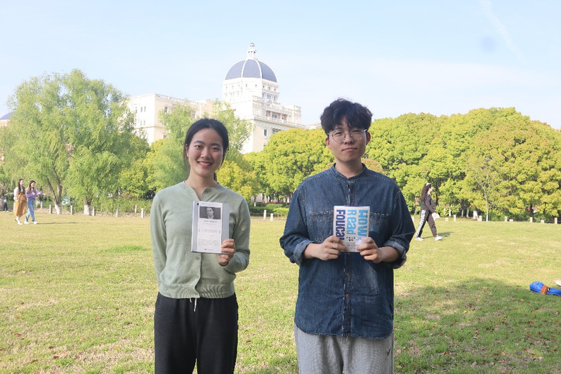 读书会开始前,辅导员张茹简要介绍了活动流程,并鼓励大家踊跃发言。恰逢天气晴朗,同学们在草地上围成一圈,席地而坐,气氛热烈,会上分享的书籍不仅有赫尔曼·黑塞的《德米安》、荣格《精灵墨丘利》和梁启超《中国近三百年学术史》等文学、哲学领域的著作,还有《上海文学散步》等内容相对轻松的散文集,丰富了本次活动的专业性与趣味性。