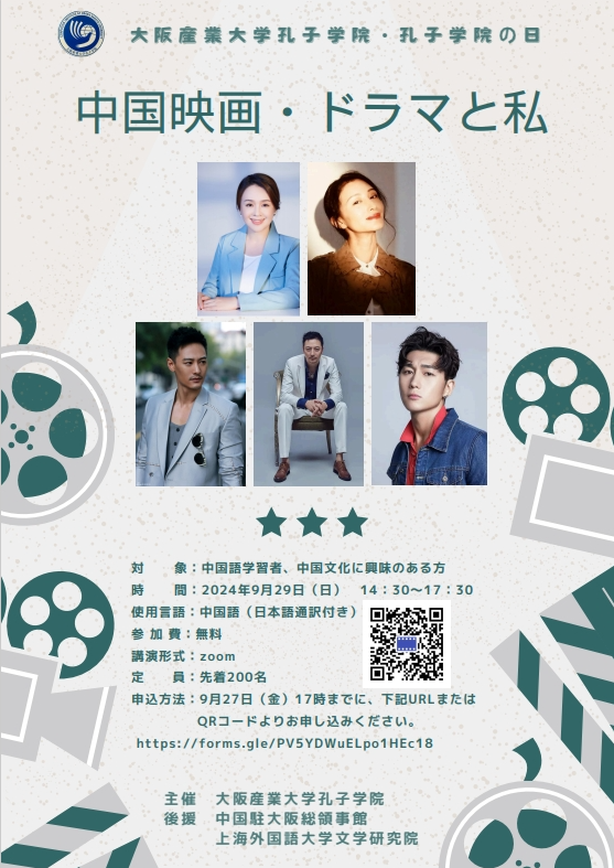 9月29日,上海外国语大学文学研究院受邀作为协办单位参加大阪产业大学孔子学院“中国影视与我”活动,中国驻大阪总领事馆薛剑总领事、大阪产业大学孔子学院中方院长康林、日方院长红粉芳惠、上海外国语大学文学研究院院长张帆等出席活动。中国著名演员崔奕、亓航、侯莹珏、史元庭、安泽豪受邀进行线上交流,40余名中国影视爱好者参加活动。