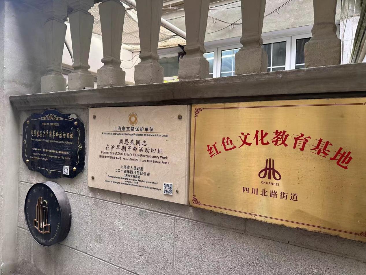第三站大家来到四川北路永安里44号周恩来在沪早期革命活动旧址,由胡荣为大家导览。1931年,特科行动科科长顾顺章、中共中央总书记向忠发相继被捕叛变,上海地下工作环境变得异常恶劣。周恩来、邓颖超夫妇随即转移到永安里44号二伯父家,隐蔽至年底离开上海,前往中央苏区。大家在旧址前热烈交流和分享党史故事,感慨在革命最低潮的时期先辈们不屈不挠的斗争意志和惊心动魄的传奇经历,对今天的美好生活之来之不易有了更深切的领悟。
