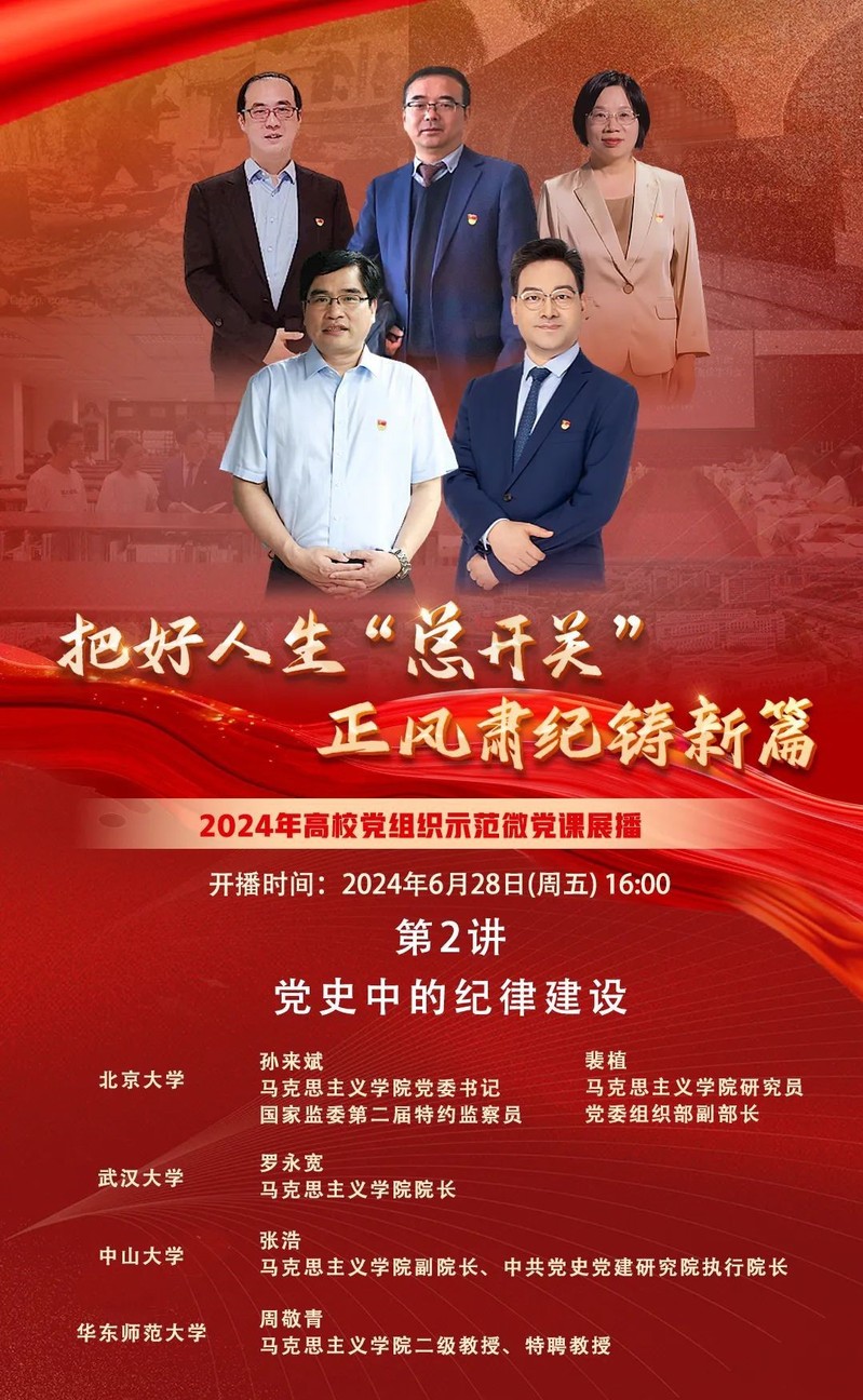 为进一步深化党内纪律教育学习,提高广大党员同志的党性修养和廉洁自律意识,引领党员深入探索党的历史长河中的纪律建设,2024年6月28日(周五)下午,本支部组织全体党员学习收看了2024年高校党组织示范微党课第二期《党史中的纪律建设》,本期微党课对廉洁纪律的解读,从建党初期与大革命时期娓娓述至土地革命时期,再到抗日战争时期、解放战争时期,通过不同案例,展现了党在不同历史时期对纪律的坚守与传承。